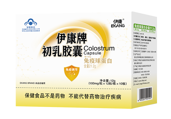 伊康牌初乳膠囊是以健康奶牛分娩后前48小時(shí)初乳為原料,經(jīng)生物活性保護(hù)技術(shù)、低溫冷凍干燥工藝提取而成的功能性**食品。